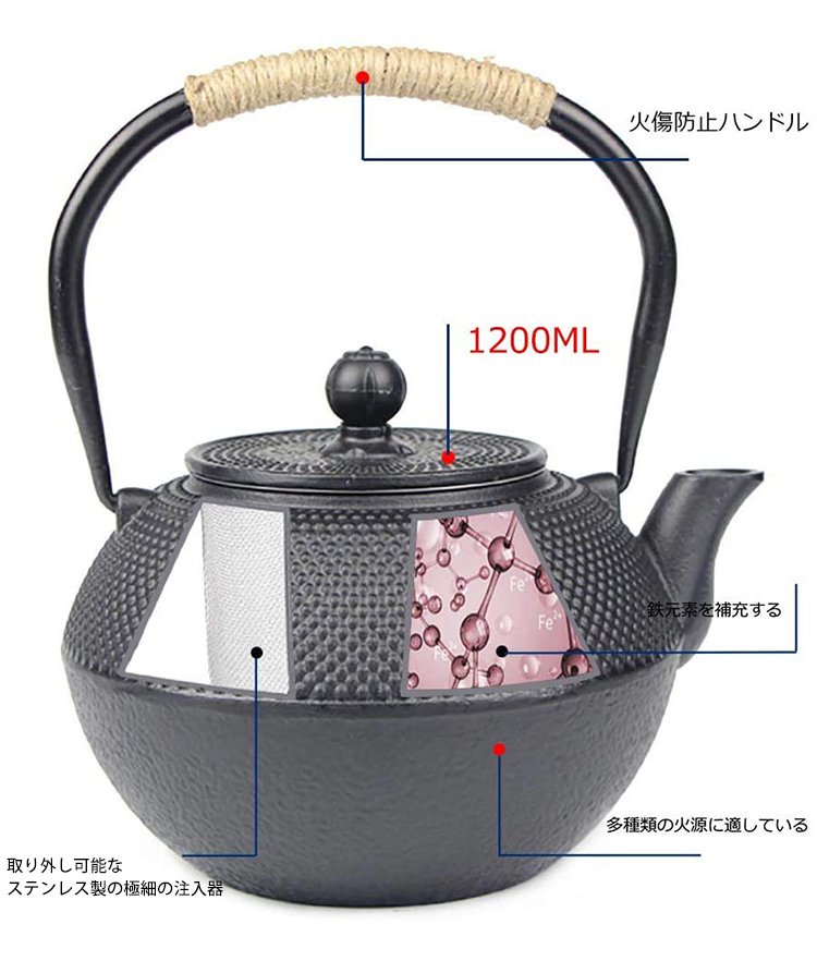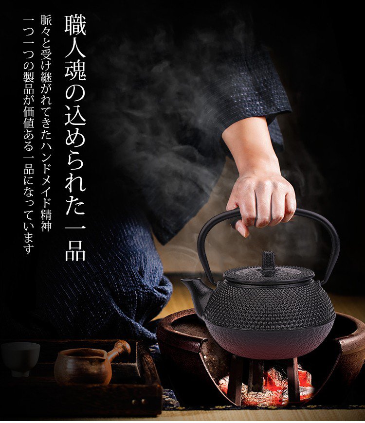 【手作り鉄瓶】 厳選された高品質の砂鉄を原料に使用、内部は塗料不使用で健康に優しい、鉄分補給